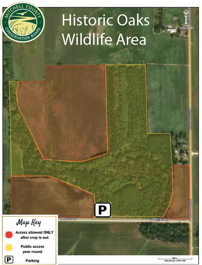 In 2024, the Mitchell County Conservation Board (MCCB) began fundraising to acquire a unique parcel of privately owned land a few miles northeast of Osage. This 63 acre property includes an established woodland and approximately 4,000 ft of Burr Oak Creek, a coldwater stream with naturally producing wild brown trout. Burr Oak Creek flows through this property and eventually into the Little Cedar River.